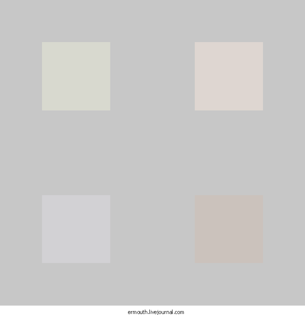 Ан нет, вы себе не представляете, насколько они разные -- вот вам те-же «серые» квадратики, только теперь на однородном фоне. Кто не верит -- посмотрите в Фотошопе. «Серые» квадратики наглухо разные, хоть и кажутся почти одинаковыми.