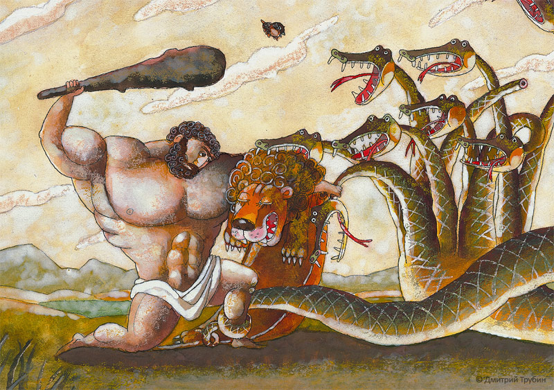 В болоте недалеко от города Лерны завелась огромная гидра о девяти головах. Гидра уничтожала целые стада и запросто ела людей. Царь Эврисфей отправил Геракла убить гидру, не сказав главного её секрета – одна из голов гидры была бессмертной.