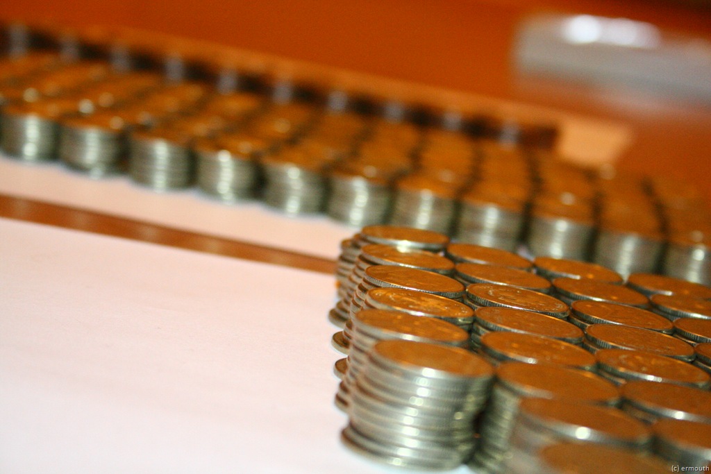 Сейчас у меня только в одной коробке примерно 3000 монеток. Примерно половину коробки я уже посчитал – это выглядит так:
