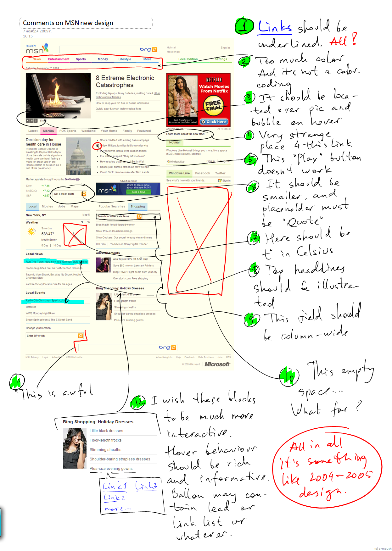 Я заскриншотил новый MSN и отпинал самые очевидные штуки.