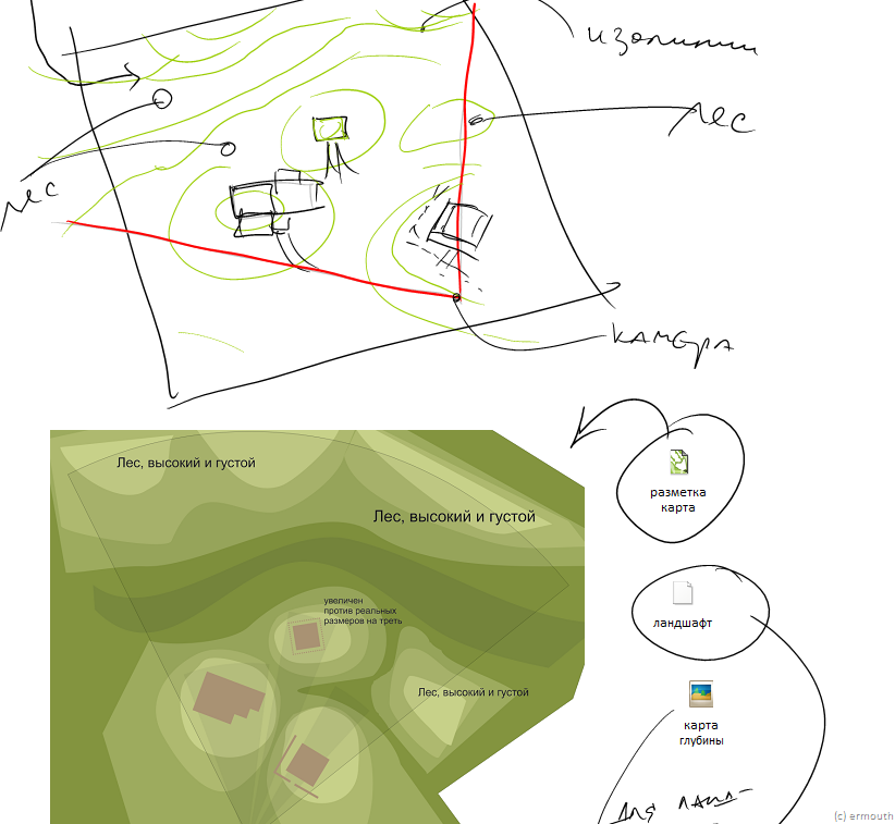 Потом для понятности нарисовалась карта местности для трёхмерки. Вот так: