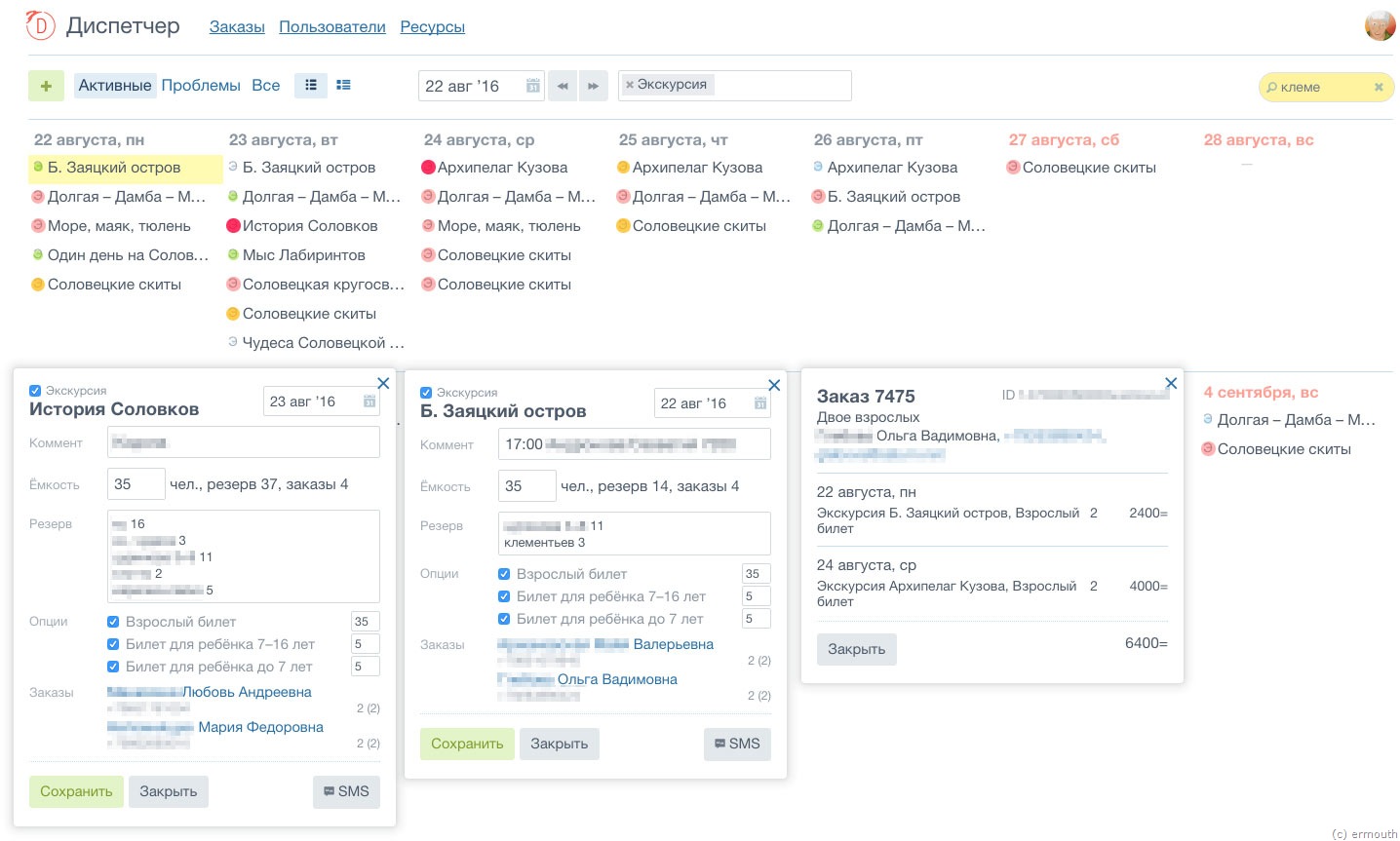 Пример про “конкуренцию с бумагой”, как раз образовавшийся после просмотра фоток записей. Так вот выглядит всплывающее окошко конкретного мероприятия на конкретную дату на бэкэнде solovki.pro:
